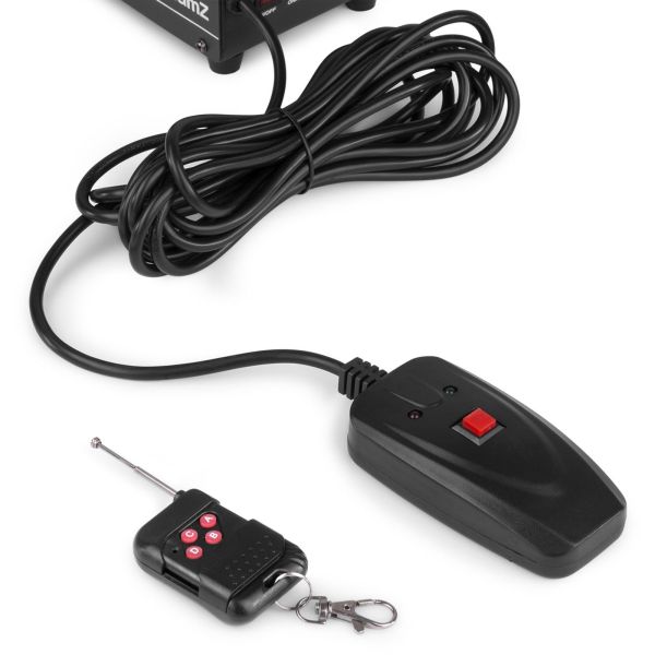 Esta vistosa maquina de humo incorpora un elemento calefactor de alta potencia controlado por termostato para gran ahorro de energía. Esta unidad incorpora en su carcasa metalica un tanque con capacidad para 2 litros incluidos en la reserva! Se puede controlar con el mando por cable (con cable 3m) asi como con el mando inalambrico tambien suministrado. Perfecto para eventos de tamaño medio. El depósito iluminado por LED muestra claramente el nivel de líquido restante.