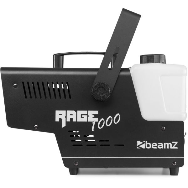 Maquina de humo 1000W de nueva generación. Carcasa metálica robusta. Lira para colgar, Control por termostato para ahorro de energía, mando por cable de 3 mts + mando inalámbrico, tanque de 2L iluminado, Humo por minuto 125m3, calentamiento 4 min.